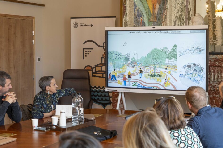 Cette réunion de travail, en présence des adjointes à la Culture et au patrimoine bâti et paysager, Dumenica Verdoni et Nathalie Apostolatos, ainsi que Nathalie Maisetti, conseillère municipale en charge des écoles a rassemblé la directrice de Marie et Toussaint Marcellesi Marie-Martine Tafarelli, le directeur de Jean Santini, Vincent Pace-Stora, l’IEN Marie-Antoinette Nesi-Casabianca, ainsi que l’Agence CGZ, maître d’oeuvre avec Pierre-André Asara, et les services communaux : Nicolas Rey (Direction de l’Education) Anthony Agostini (DGA) et Pierre-Jean-Mondoloni (ingénieur au service des grands projets).